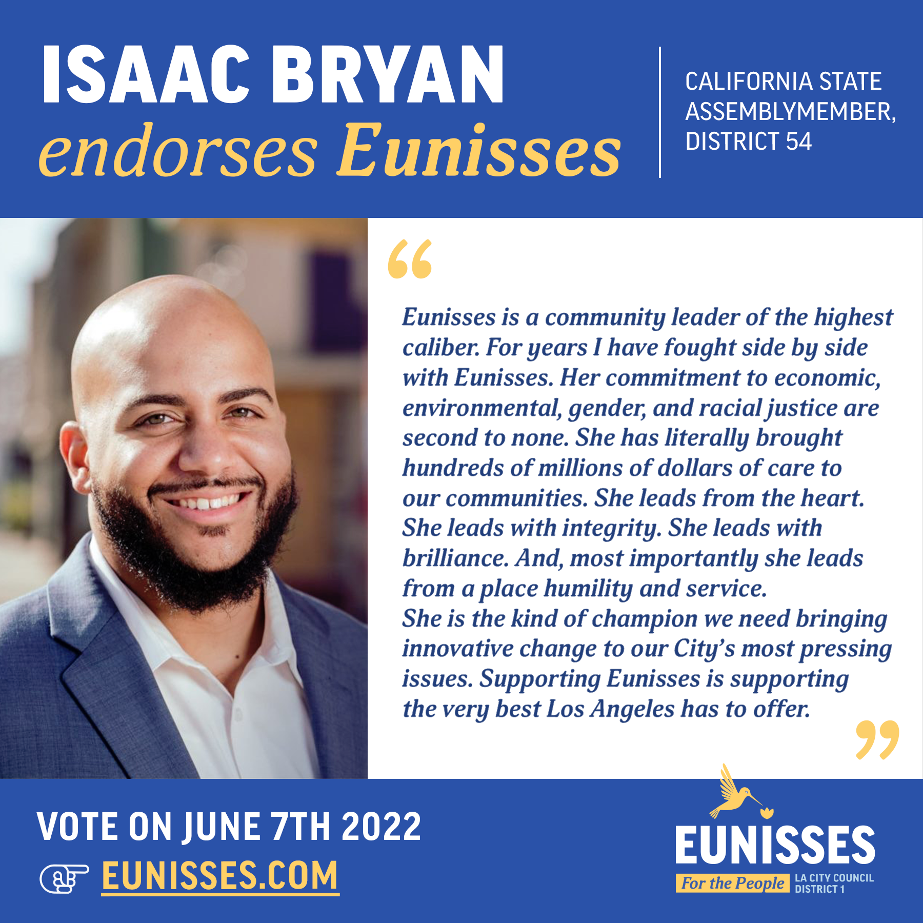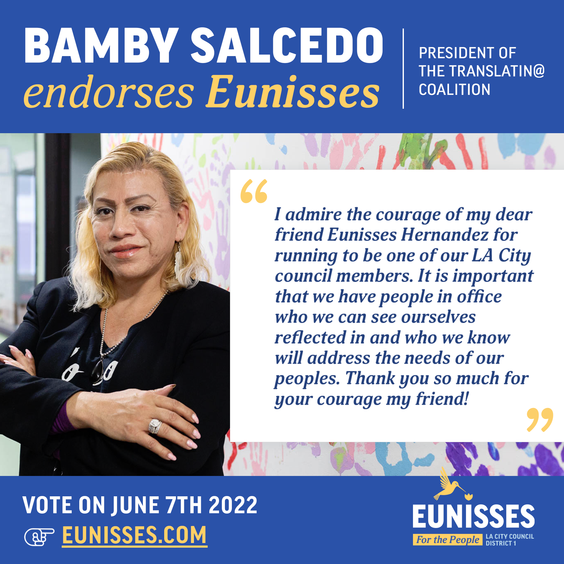 Visual identity & graphics for Eunisses Hernandez, candidate for Los Angeles City Council District 1.